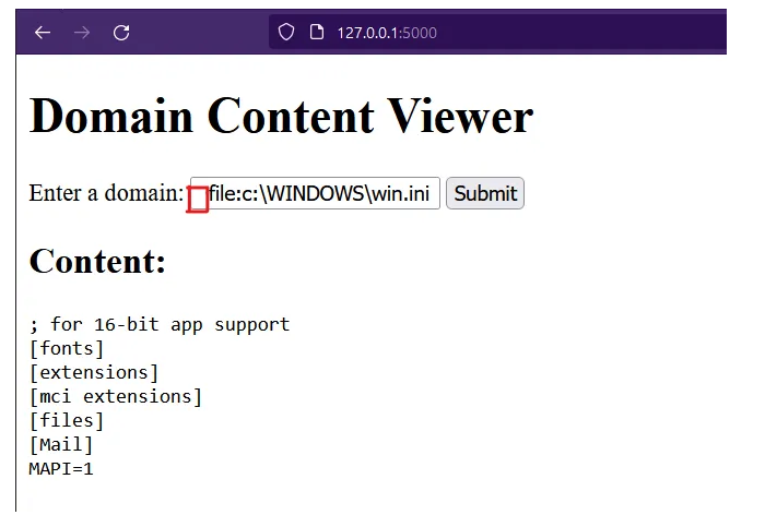 - All we need to do to check this vulnerability is to add a space before our LFI command: