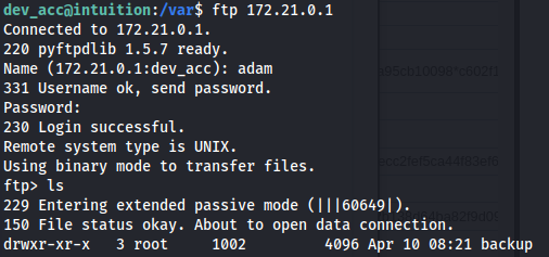 - We know that dev_acc is web root so we can go into /var and look at the files in there