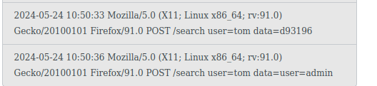 Go to search term and search for “user=admin” While on that search result page - change the URL to http://10.102.122.21/raw/log.txt