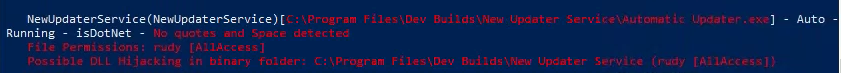 Possible DLL Hijacking in binary folder: C:\Program Files\Dev Builds\New Updater Service (rudy [AllAccess])